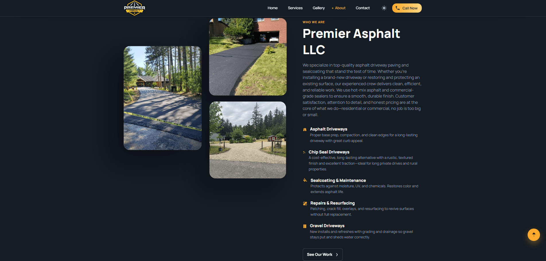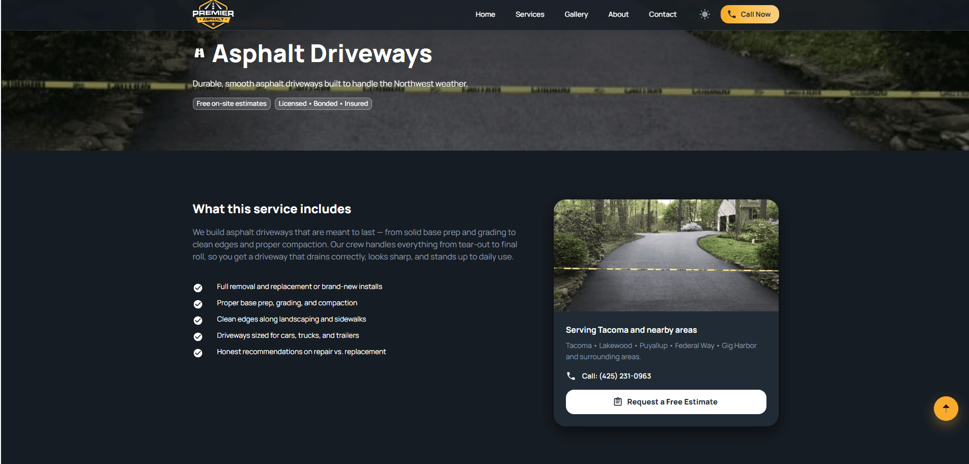 Premier Asphalt evolved from a basic informational website into a polished, high-performing digital presence that strengthens credibility, increases customer engagement, and drives measurable lead generation.